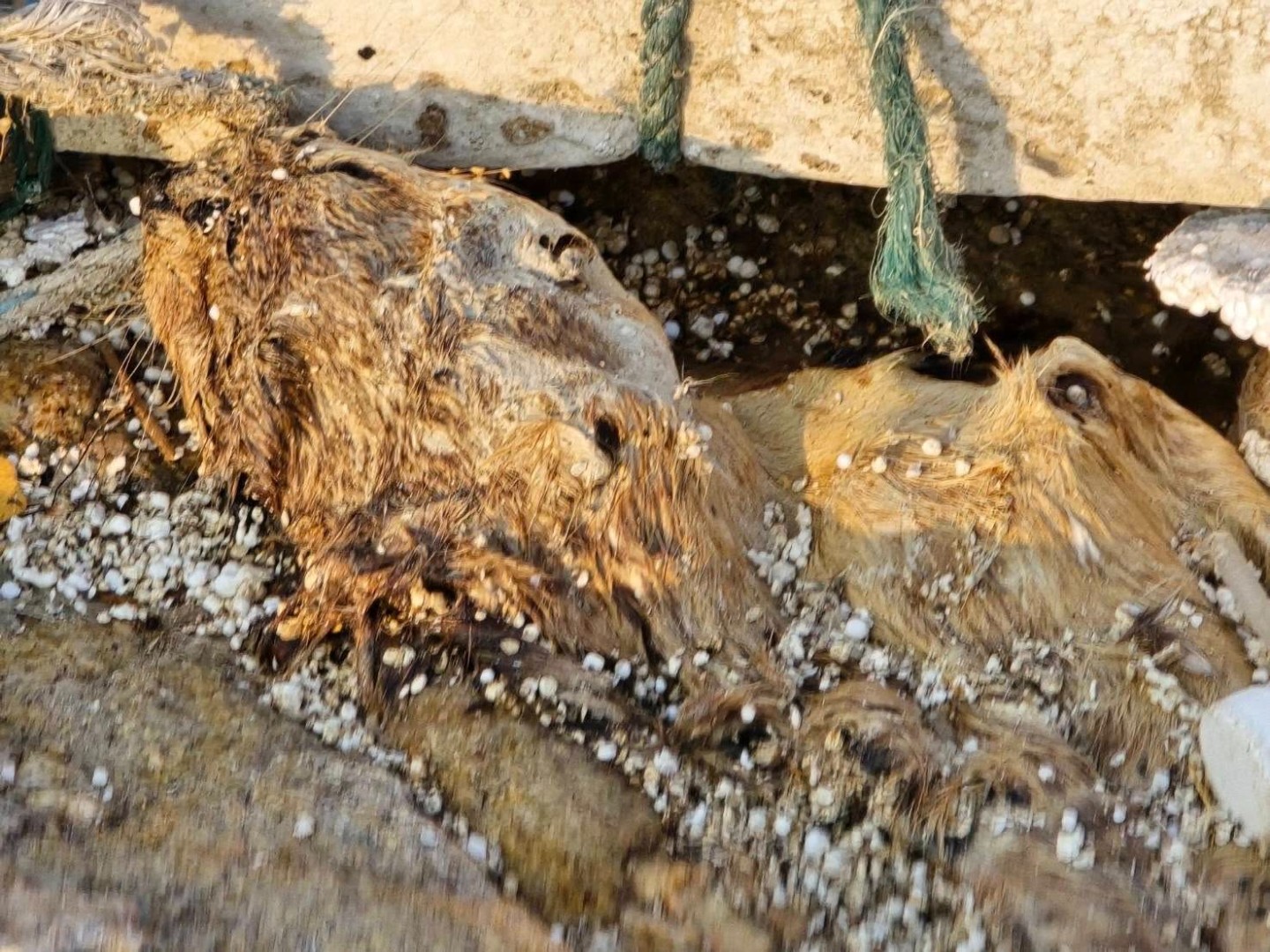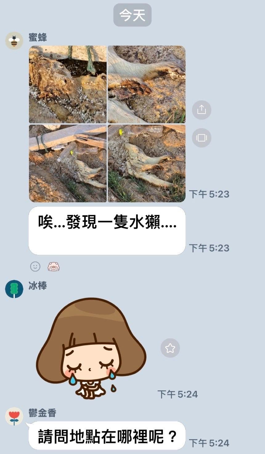 今天,金門社區大學志工在海岸巡查過程中,發現一隻不幸死亡的歐亞水獺。