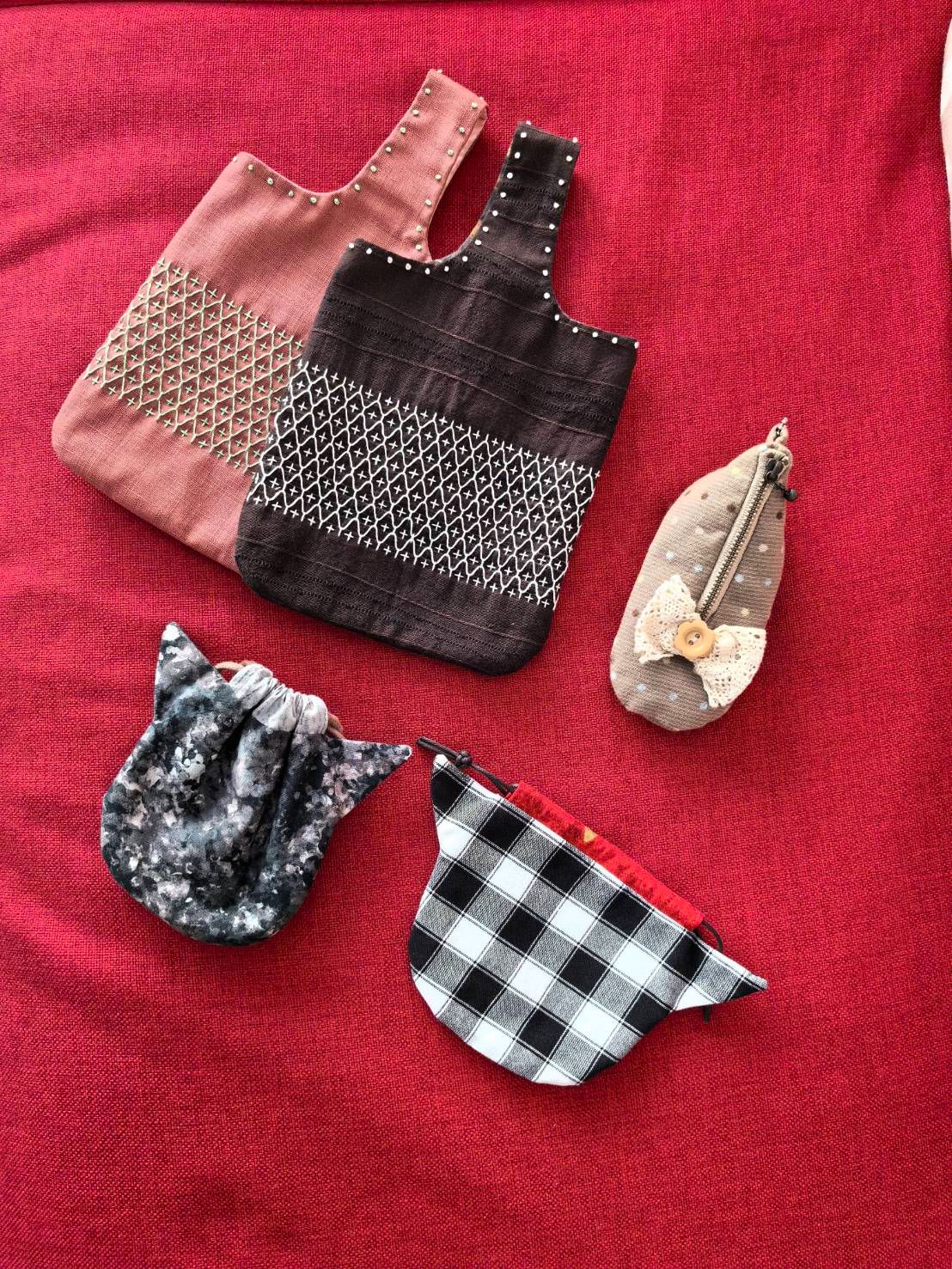融合金門在地特色文化創作利用拼布技法將金門特色文化,如風獅爺、高粱、花帔、閩式建築、花磚……等為主要創作元素,製作成壁飾、包包、家飾類等實用作品,運用到生活當中。